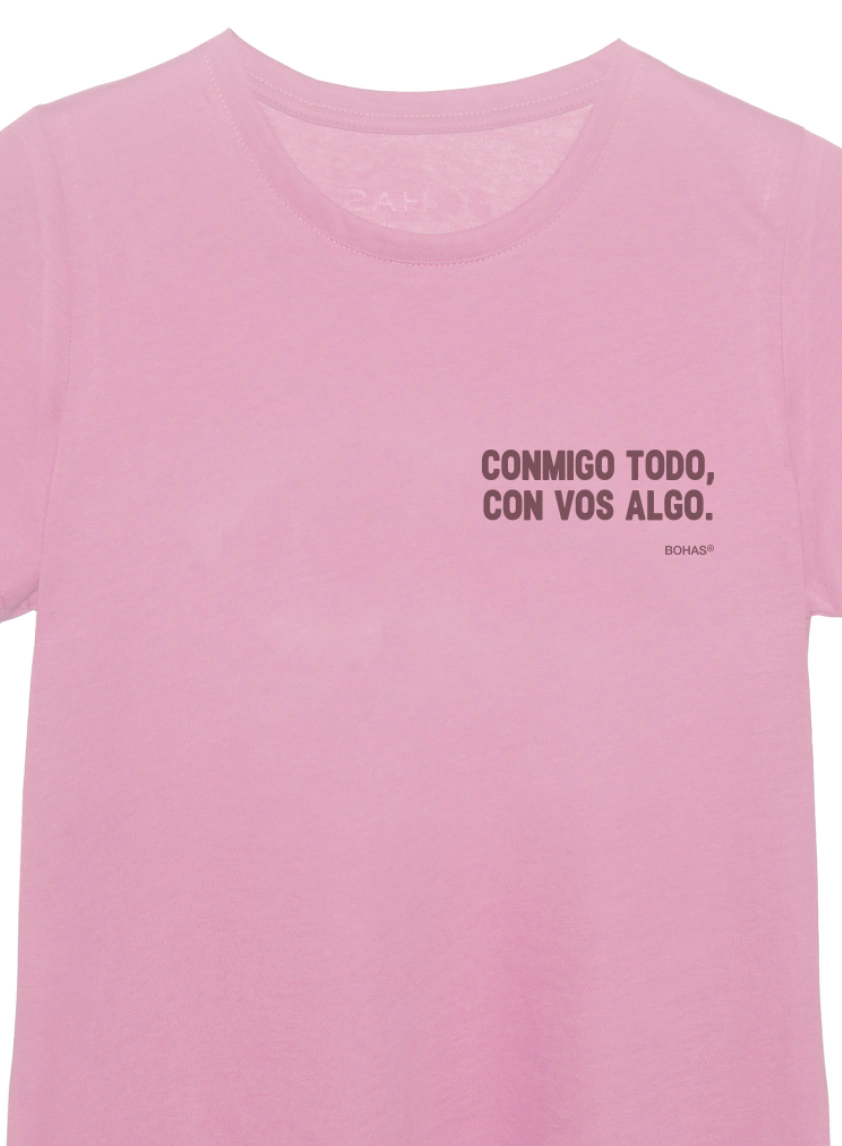 Remera manga corta, cuello redondo, calce regular, rosa.